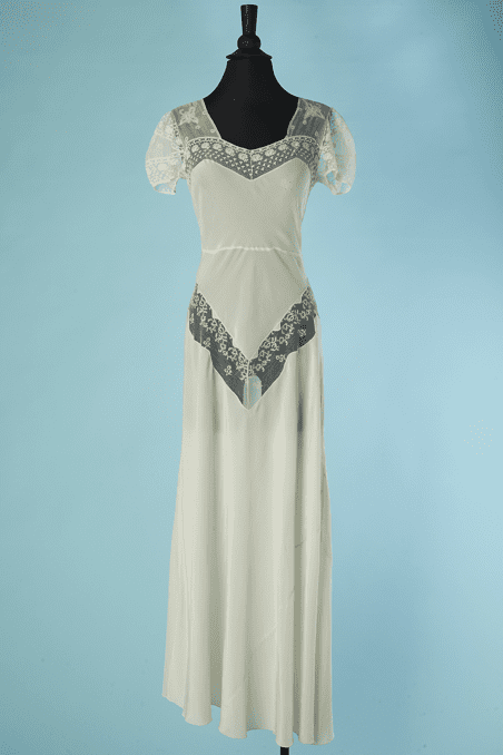 Chemise de nuit 1930 en soie écrue incrustée de dentelle