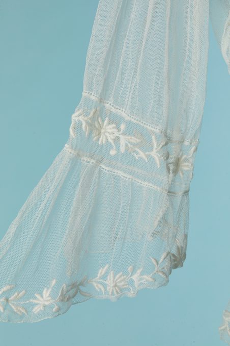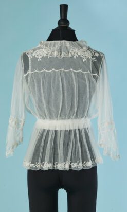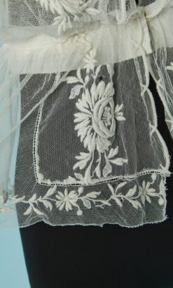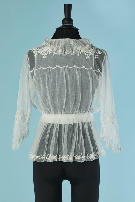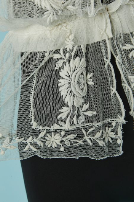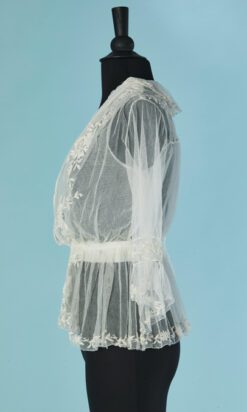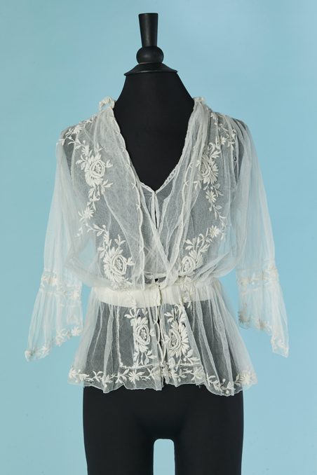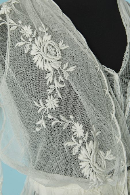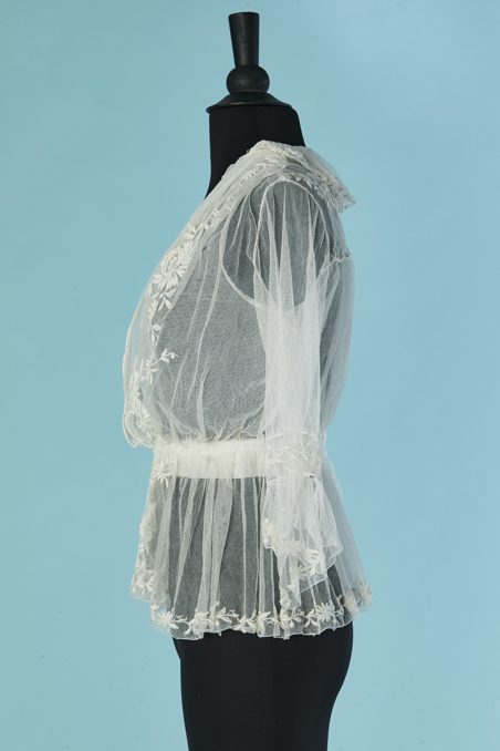 Chemisier 1920 en tulle blanc brodé de fleurs