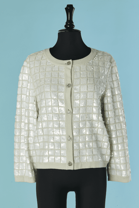 Gilet Chanel en cachemire écru brodé de paillettes