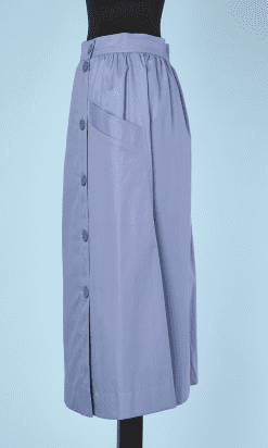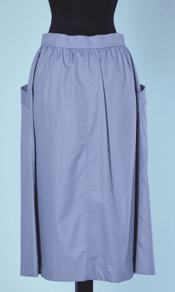 Jupe 1970 en coton bleu ciel avec double boutonnage devant et larges poches, griffe Courrèges