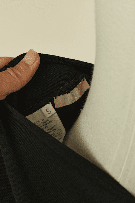 Étiquette : Jupe Alaïa en viscose noire avec surpiqûres grises