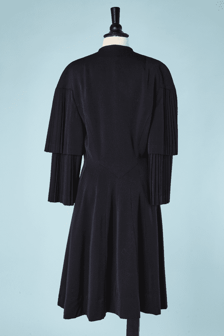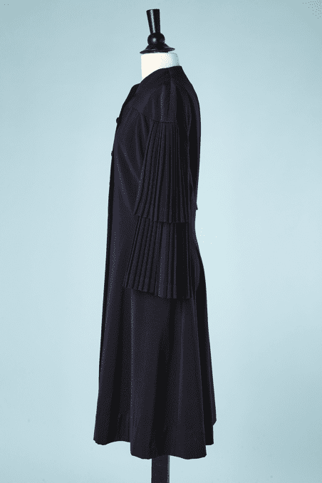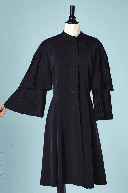 Manteau 1930 en lainage marine double manches plissées
