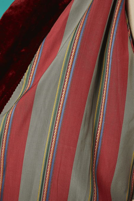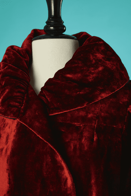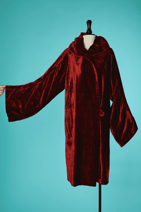 Manteau du soir 1925-30 en soie imprimée de fleurs multicolore  et lamé or, large col, larges manches longues