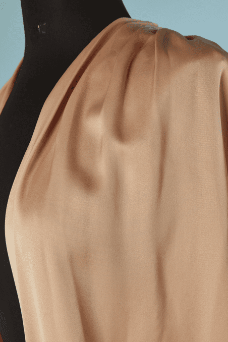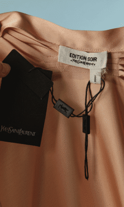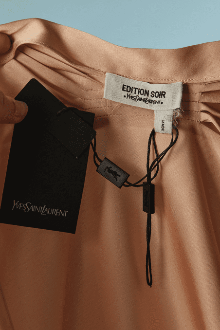 Étiquette : Manteau du soir Yves Saint Laurent en satin rose pêche