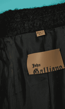 Étiquettes : Manteau ceinturé John Galliano en mohair, Manteau John Galliano en mohair, Manteau John Galliano en mohair double boutonnage, Manteau John Galliano en mohair noir