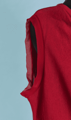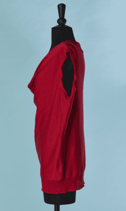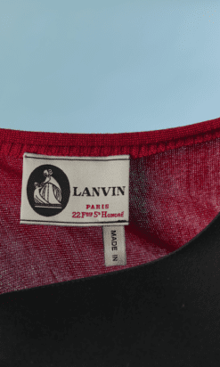 Pull vintage Lanvin en coton rose et mousseline rouge