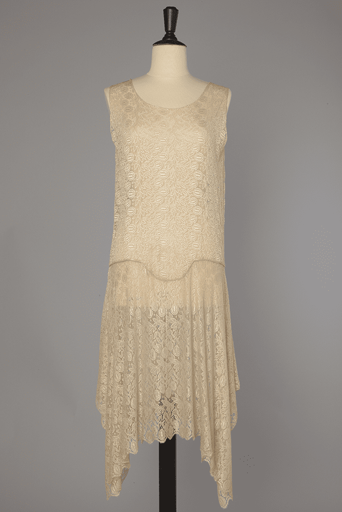 Robe 1925 en dentelle de soie doublée de mousseline.