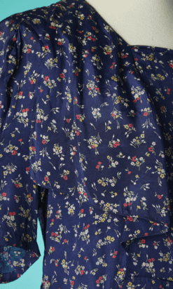 Étiquettes : 1930, Imprimé de fleurs, La mode 1930, Robe 1930 en rayonne marine, Robe 1930 en rayonne marine imprimée de bouquets de fleurs