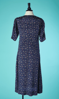 Robe 1930, rayonne marine imprimé de bouquets