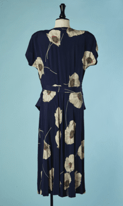 Robe 1940 en rayonne marine imprimée de pavots