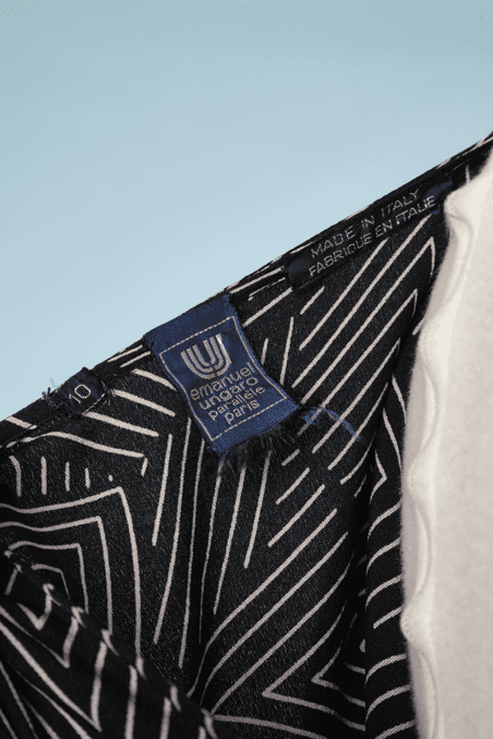 Robe 1980 Emanuel Ungaro noire et motifs géométriques
