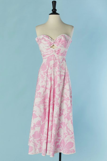 Robe bustier Oscar de la Renta en coton blanc et rose