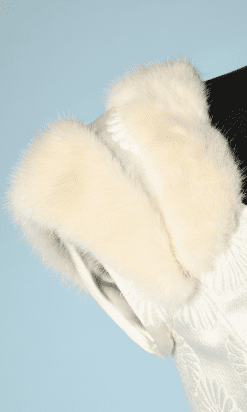 Robe de mariée 1960 en satin blanc broché et vison blanc
