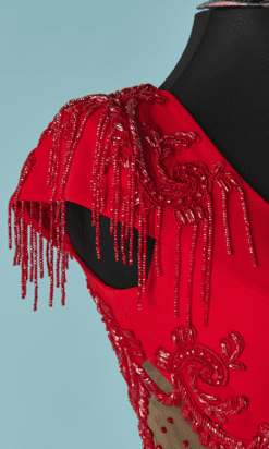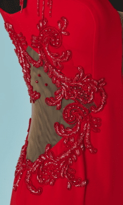 Étiquette : Robe du soir Gai Mattiolo the red carpet rouge brodée de perles