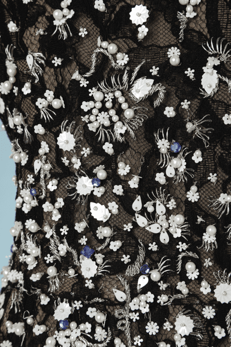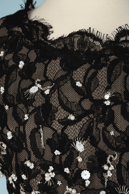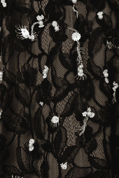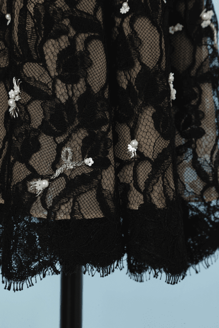 Robe en dentelle noire et perles blanches Oscar de la Renta