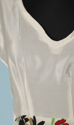 | Agréments | Bande plissée, Col V, Coupe asymétrique, Imprimé fleurs et feuillages |