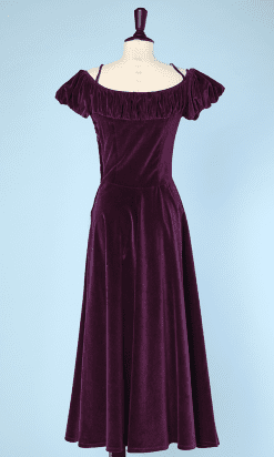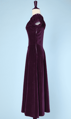 Robe longue 1940-1950 en velours prune