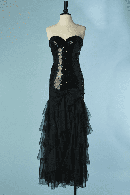 Robe longue du soir Loris Azzaro pailletée et volants de tulle noirs