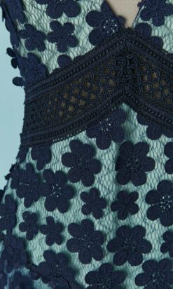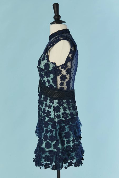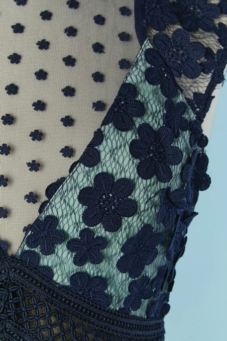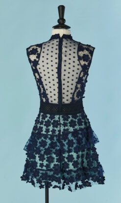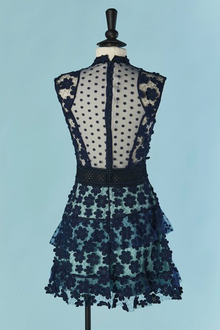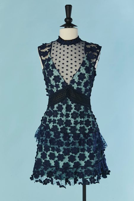 Robe Self Portrait en tulle marine et fleurs en guipure