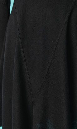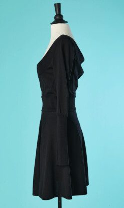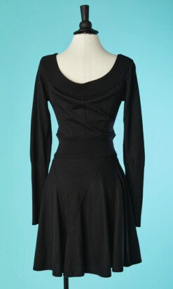 Robe vintage Alaïa en lainage noir, large encolure avec décolleté, manches longues avec bords côtes à partir du coude, taille cintrée, jupe évasée avec découpes en triangles