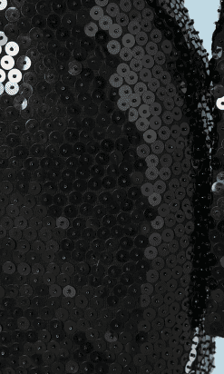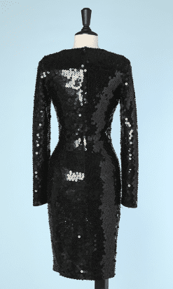 Robe moulante vintage entièrement pailletée noire, manches longues et grande encolure, fermeture éclair dos
