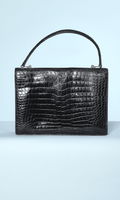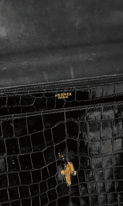Sac hermès molodel palonnier en crocodile porosus noir avec fermoir en métal plaqué or de 1967. 26cmX19cmX0,35cm.