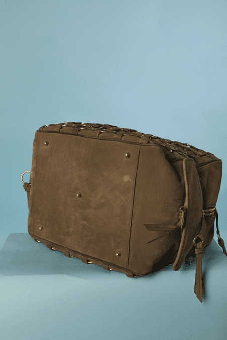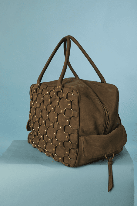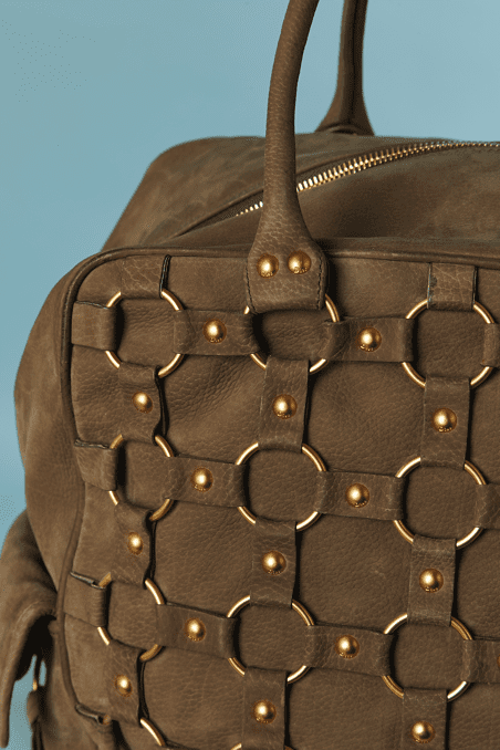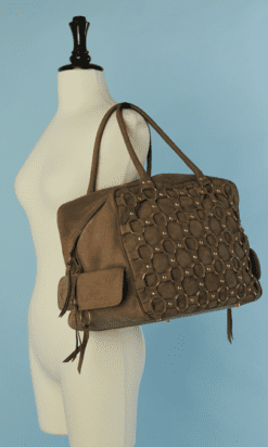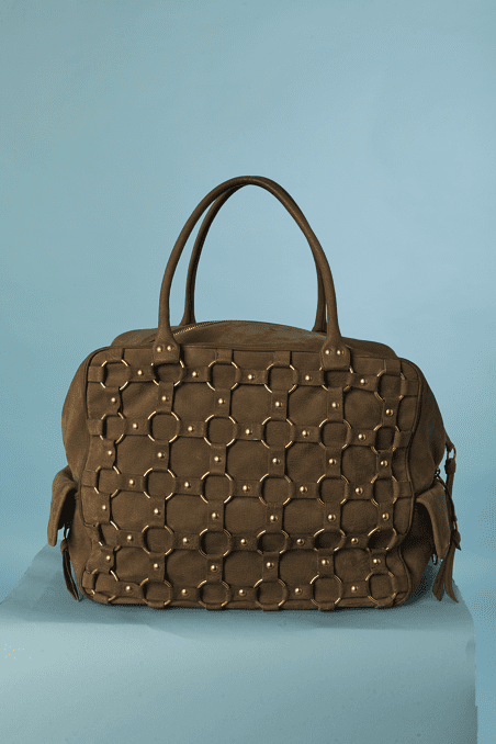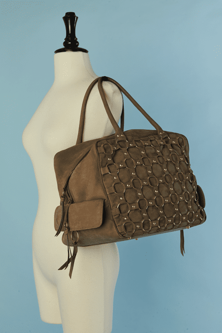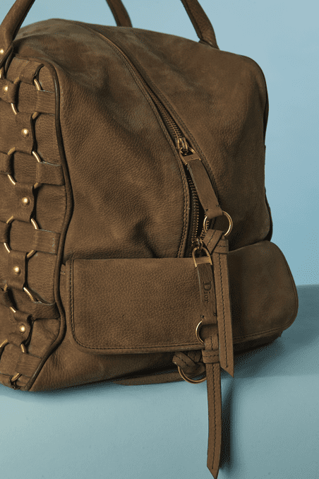 Étiquette : Sac vintage Christian Dior en daim kaki avec anneaux dorés