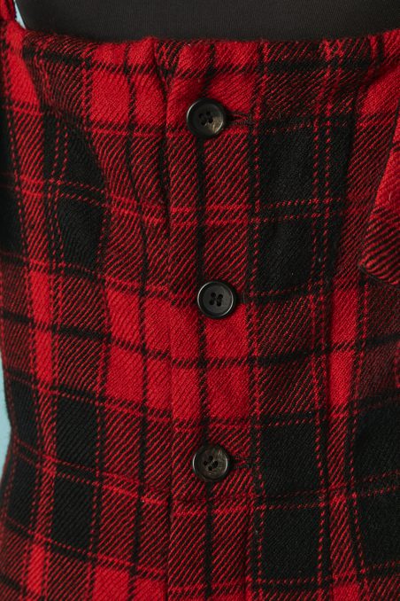 Salopette Yohji Yamamoto en lainage écossais rouge et noir
