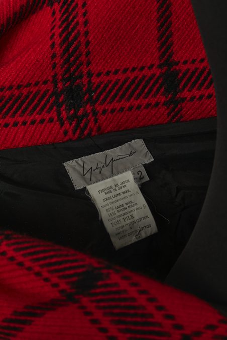 Étiquette : Salopette Yohji Yamamoto en lainage écossais rouge et noir
