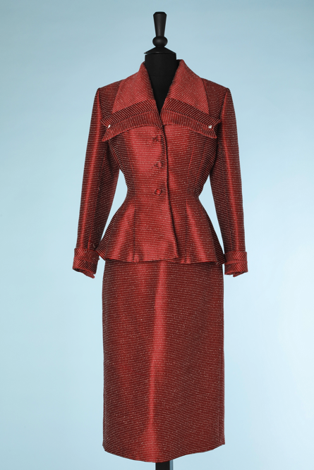 Tailleur 1940 en laine et soie rouge rayures blanches Lilli Ann