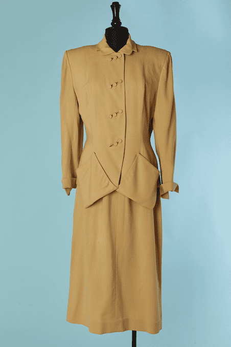 Étiquette : Tailleur 1940 Lilli Ann en laine tissée moutarde