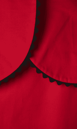 Étiquette : Tailleur 1980 Pierre Balmain en coton rouge et croquet noir