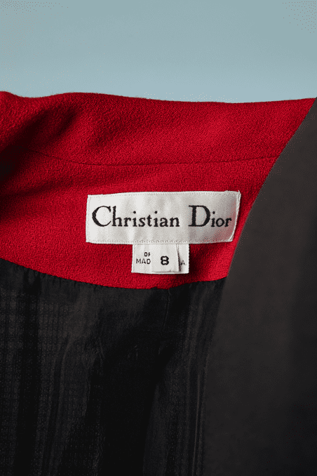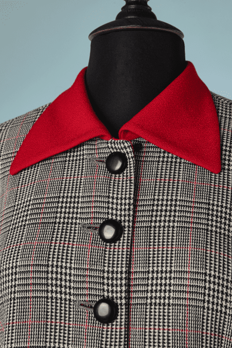 Tailleur Christian Dior prince de galles col et poignets rouges