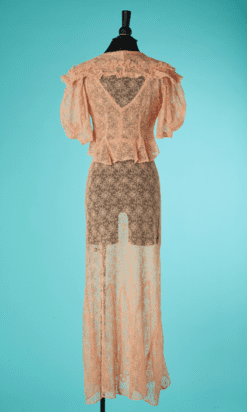 Tailleur du soir 1930 en dentelle rose orangé