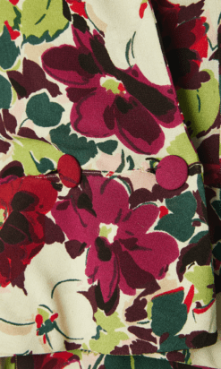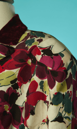Étiquettes : Lucien Lelong, Tailleur du soir Lucien Lelong, Tailleur du soir Lucien Lelong 1937-1938, Tailleur du soir Lucien Lelong en crêpe imprimé de fleurs et feuillages