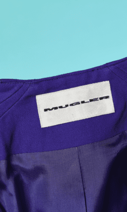 Étiquettes : Tailleur Mugler Vintage, Tailleur Mugler Vintage en lainage, Tailleur Mugler Vintage en lainage violet