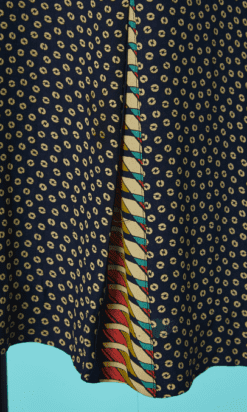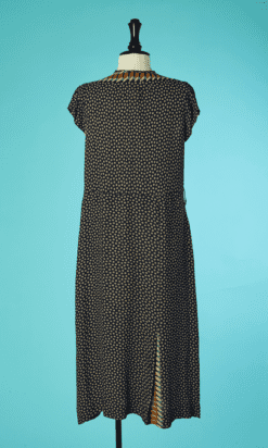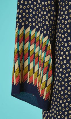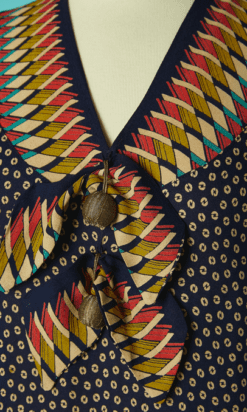 Étiquettes : Tailleur Robe et Veste 1930, Tailleur Robe et Veste 1930 en soie imprimée, Tailleur Robe et Veste 1930 en soie marine imprimée multicolore
