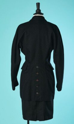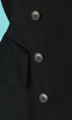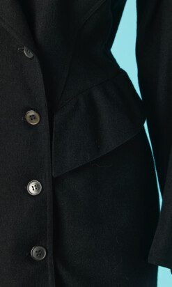 Étiquettes : Alaïa, Tailleur Alaïa, Tailleur Alaïa 1980-90, Tailleur Alaïa en lainage noir, Tailleur vintage Alaïa, Veste longue double boutonnage