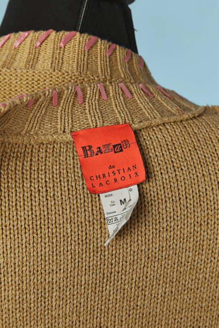 Étiquette : win-set Christian Lacroix en coton beige brodé de motifs en raphia