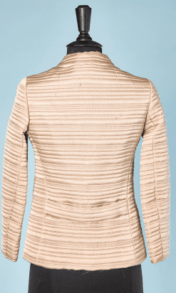 Veste 1960 en satin écrue matelassé griffée Maggy Rouff