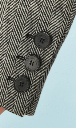 | Agréments | Boutons siglés, Col châle, Manches longues, Poche poitrine, Poches avec rabat, Taille cintrée, Veste bar |