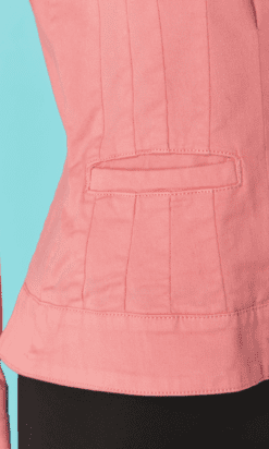 Étiquettes : Christian Lacroix, Griffé, Veste Christian Lacroix en coton, Veste Christian Lacroix en coton rose, Veste Christian Lacroix en coton rose avec surpiqûres, Veste vintage Christian Lacroix