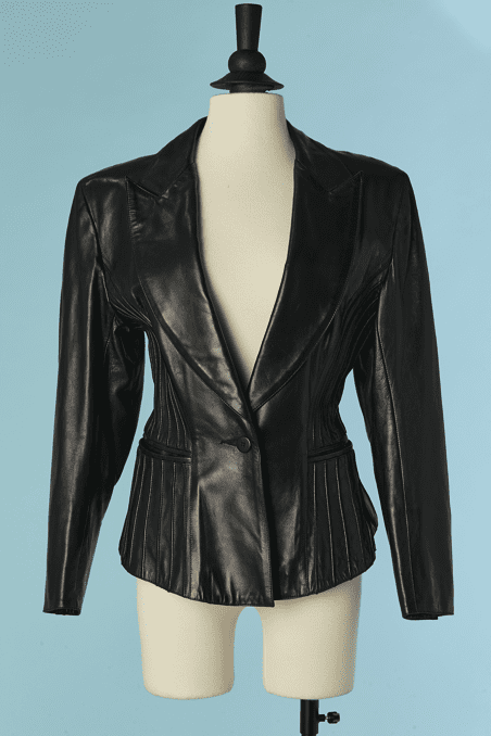 Étiquette : Veste Claude Montana en cuir noir avec surpiqûres