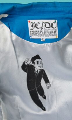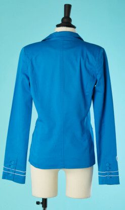 Étiquettes : Veste Jean Charles de Castelbajac, Veste Jean Charles de Castelbajac turquoise et gris argent, Veste Jean Charles de Castelbajac turquoise et gris argent et col en forme de cœur