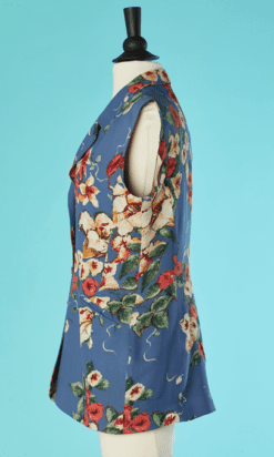 Veste kenzo jungle sans manches bleue à fleurs